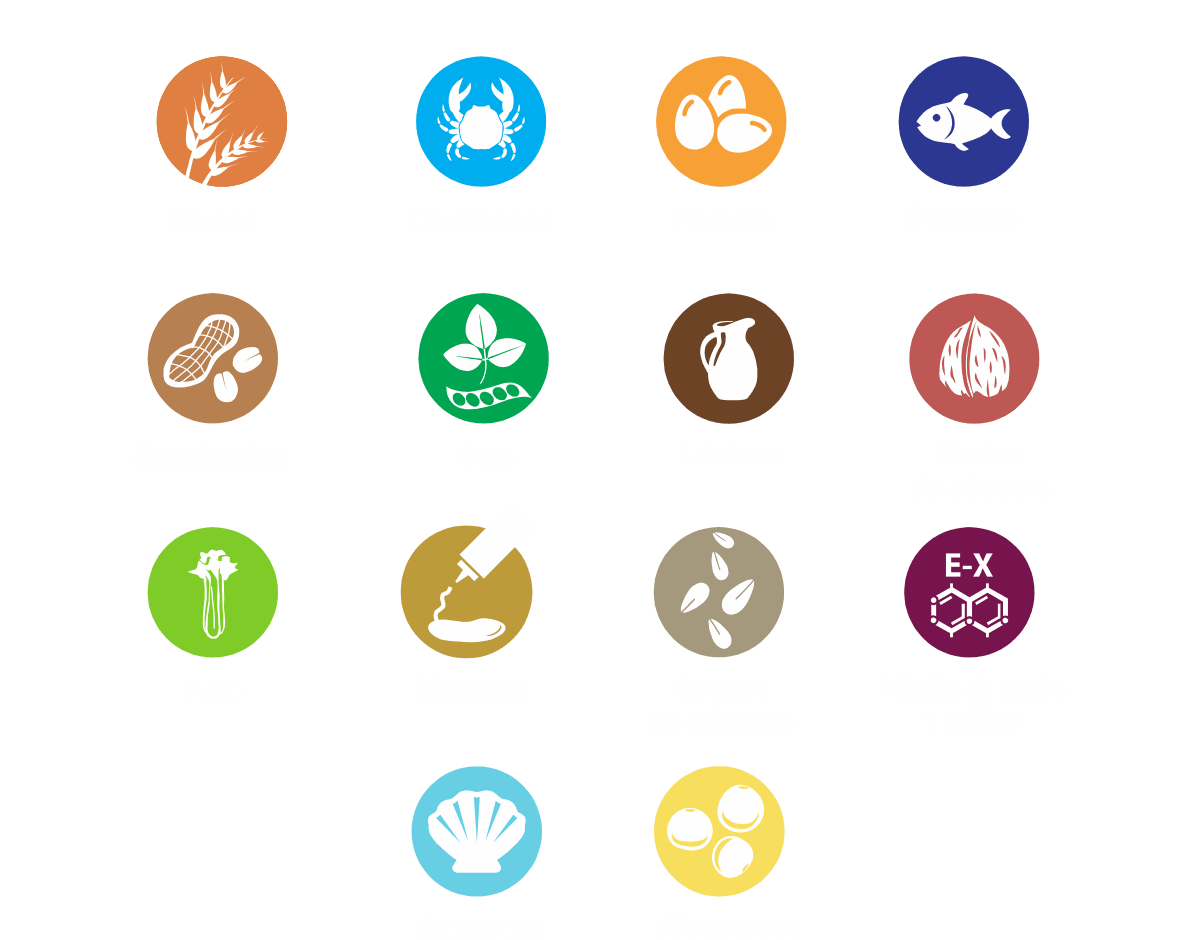 La declaración de alérgenos se ha realizado conforme a los 14 ingredientes alergénicos enumerados en